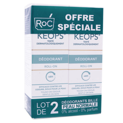 ROC KEOPS DEODORANT ROLL ON LOT DE 2X30ML est disponible en vente en ligne à prix discount sur Pharmashopdiscount.