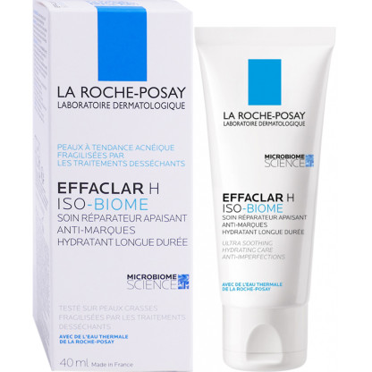 Depuis plus de 30 ans, le laboratoire LA ROCHE POSAY développe des produits dermo-cosmétiques élaborés avec de l’eau thermale de LA ROCHE POSAY riche en Sélénium aux propriétés anti-radicalaires, pour répondre à tous les besoins des peaux même les plus fragiles. La gamme EFFACLAR propose des produits rénovateurs, adaptés aux profils des peaux grasses à imperfections ou à tendance acnéique. EFFACLAR H, à la texture très fine et non collante qui pénètre la peau sans effet de gras, est spécialement conçu pour hydrater en douceur les peaux fragilisées par les traitements desséchants. Sa composition associe du niacinamide apaisant à des MP-Lipides, nouvelle génération de lipides qui favorisent la reconstruction de la barrière cutanée. Résultat : dès la première application la peau est apaisée, elle retrouve confort et souplesse. Formule testée sous contrôle dermatologique, non comédogène.