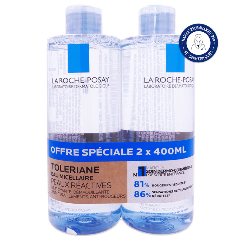 LA ROCHE POSAY TOLERIANE EAU MICELLAIRE PEAUX RÉACTIVES LOT DE 2X400ML est disponible en vente en ligne à prix discount.