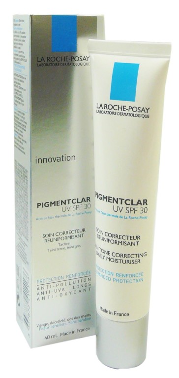 Depuis plus de 30 ans, le laboratoire LA ROCHE POSAY développe des produits dermo-cosmétiques élaborés avec de l’eau thermale de LA ROCHE POSAY riche en Sélénium aux propriétés anti-radicalaires, pour répondre à tous les besoins des peaux même les plus fragiles. La gamme Pigmentclar de LA ROCHE POSAY est composée de soins pour redonner au visage et au regard fatigué et terne toute sa lumière. Le soin correcteur composé d’actifs anti-taches puissant (PhE-Résorcinol, ginkgo, acide ferulique) estompe jour après jours les défauts cutanés et les taches pigmentaires, et protège de la pollution et des agressions extérieures. Il contient également un système filtrant innovant UVB SPF30/UVA PPD15 pour protéger la peau du soleil. Dès l’application la peau retrouve son éclat, le teint est unifié. Jour après jour, les taches s’estompent visiblement pour laisser un visage uniforme.