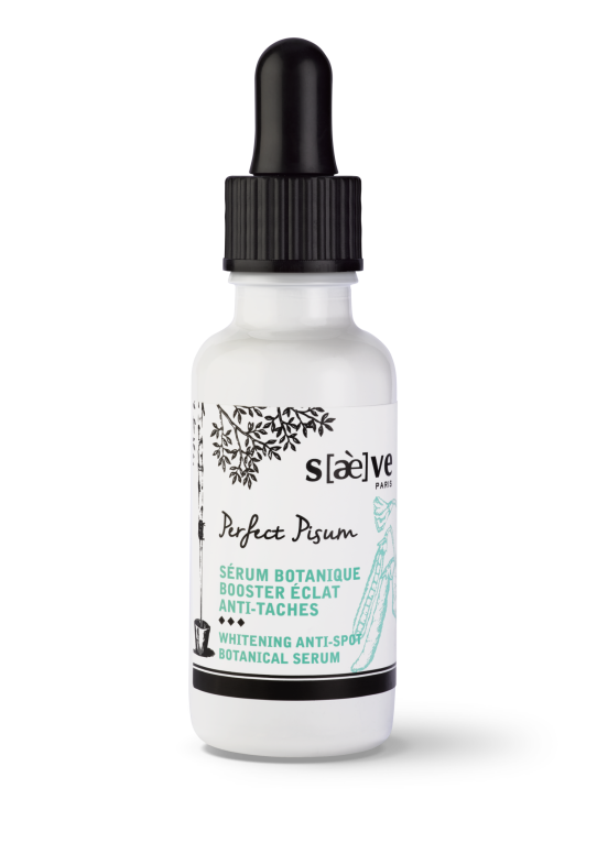 La marque Saeve, est la première marque de cosmétiques française qui propose sous le brevet Immunox ® des soins naturels, experts et ultra-performants à base de Sève fraîche de Bouleau bio aux vertus anti-oxydante, détoxifiante, reminéralisante, revitalisante, et de Chaga bio, «champignon de l’immortalité» qui renferme l’une des plus fortes concentrations en anti-oxydants (25%)du monde végétal et d’autres ingrédients naturels surprenants. Une marque aux promesses authentiques qui utilise une forte concentration d’actifs pour un résultat sur la peau évident, visible et durable. La gamme SAEVE Perfect est une gamme composé d’extrait de Pois Titré aux vertus éclaircissante et anti-taches pour une peau unifiée et radieuse. SAEVE Perfect Pisum Sérum Botanique Éclat est un sérum qui va corriger les taches dues au soleil ou au vieillissement cutané grâce à sa synergie d’actifs concentré...un vrai révélateur d’éclat qui va également protéger la peau. Jour après jour, les taches s’estompent, le teint est plus nette, plus éclatant.