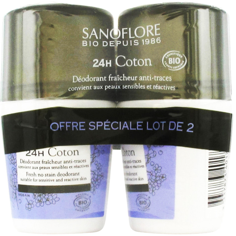 SANOFLORE 24H COTON DEODORANT FRAICHEUR BIO ROLL-ON 2 X 50 ML