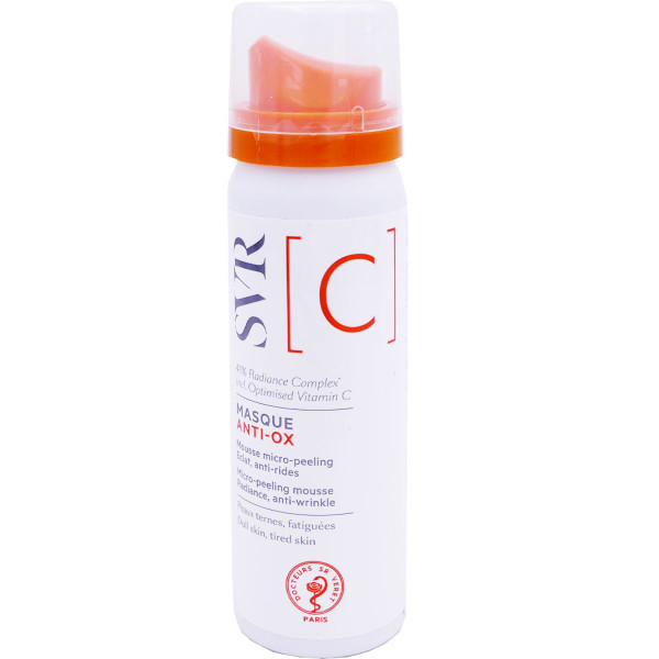 La gamme A B3 C de SVR est composée de soins anti-âges ultra-concentrés conditionnés en compte-gouttes destinés aux peaux marquées par l’âge pour leur redonner beauté et jeunesse en 7 jours ! [C] Masque Anti Ox est une mousse micro-peeling ultra-concentré anti-âge ciblé qui va par la vitamine C sous forme optimisée hautement dosé à 25%, tonifier la peau pour réduire les signes de l’âge et de fatigue et lui redonner une énergie nouvelle. Il contient également du gluconolactone, niacinamide (vitamine B3), complexe hydratant et un agent éclaircissant qui sont des actifs retexturisants et repulpants pour une peau hydratée, douce et lissée. Sa texture ultra-sensorielle délivre une mousse onctueuse à l’application pour un soin plaisir. En seulement 15 minutes la peau est douce et réveillée. Dès 1 mois, la peau retrouve tout son éclat, la peau est lissée, uniforme et retrouve sa vitalité.