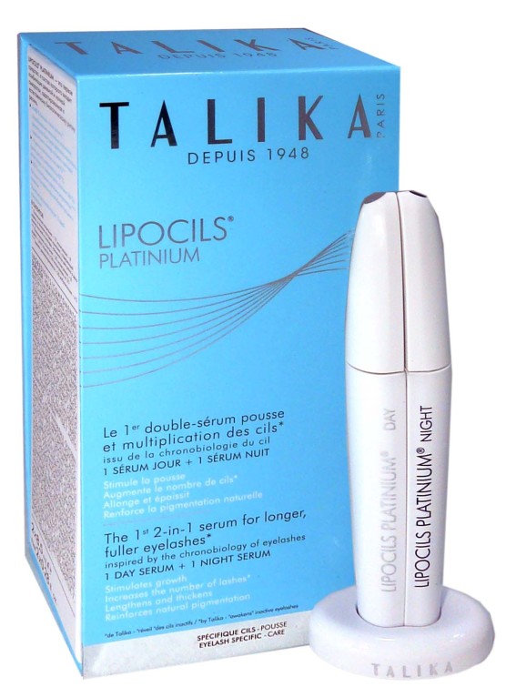 C’est en soignant les grands brûlés de guerre à la fin des années 40 que le docteur Danielle Roches élabore un produit bactéricide à base de plantes qui favorise de façon spectaculaire la repousse des cils et des sourcils. TALIKA et son produit phare LIPOCILS ont vu le jour, suivis rapidement par une gamme de soins tout aussi innovants et efficaces. Les sérums Lipocils Platinium issu de la recherche en chronobiologie cellulaire vont agir le jour et la nuit pour redonner aux cils de la longueur et de la force, multiplier le nombre de cils et leur donner une couleur plus foncée. Le sérum qui agit pendant la journée, va favoriser la pousse des cils, augmenter le volume et l’épaisseur des cils, gainer et protéger des agressions extérieures, stimuler la synthèse de la mélanine afin d’intensifier la couleur des cils et régénérer les cellules ciliaires afin de freiner leur chute, grâce au complexe végétal mythique qui est un mélange de 5 plantes, de coléus forskohlii et d’extraits de protéines de soie qui vont participer à la base du maquillage en formant une gaine autour du cil et ainsi intensifier la courbure des cils. Le sérum nuit qui agit pendant le sommeil pour « réveiller » les cils, va lutter contre leur chute en stimulant leur repousse au moment de leur cycle circadien, allonger leur période de croissance et diminuer leur période de repos, renforcer la texture et la qualité de chaque cils tout en favorisant l’ancrage du cil pour ralentir la chute, et redonner de l’énergie aux cellules du bulbe ciliaire grâce à la fleur de trèfle rouge, à l’adénosine, au complexe végétal mythique ainsi qu’au peptide expert qui a des propriétés anti-âge.. En agissant le jour et la nuit, la chute des cils sera ralentie, et les cils seront plus nombreux et plus longs jour après jour.