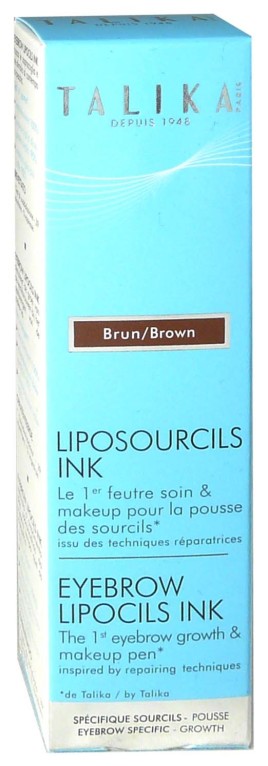 Liposourcils Ink de TALIKA, le soin qui a été conçu par le Dr Danielle Roches en 1948, pour redonner aux sourcils plus d’épaisseur et leur couleur naturelle en seulement 4 semaines. Couleur Brun