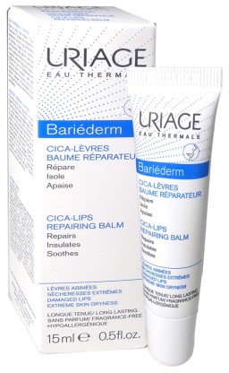 La gamme BARIEDERM des laboratoires URIAGE est composée de soins réparateurs pour redonner aux peaux très sèches avec fissures ou crevasses, douceur et confort.Cica-lèvres BARIEDERM associe un complexe breveté Poly-2p à base de 2 polymères à des phytostérols pour réparer et protéger les lèvres des agressions en les isolant par un film protecteur invisible, nourrir intensément, et apaiser de tout inconfort. La formule du baume réparateur pour lèvres est complétée par des phytosqualanes et une base lipophile « longue durée ». Sa texture riche glisse sur les lèvres à l’application pour les laisser douce, et confortables.