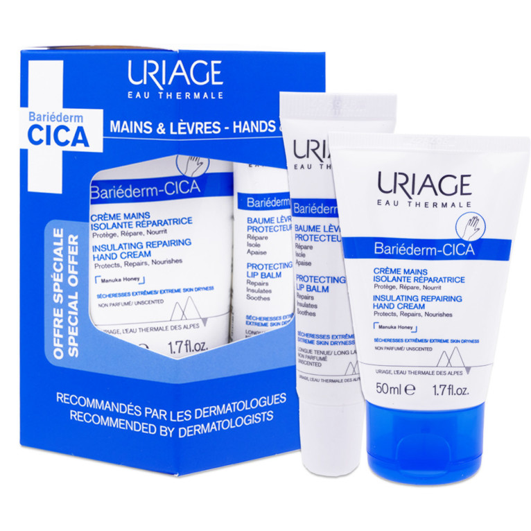 URIAGE BARIÉDERM CICA CRÈME MAINS + BAUME LÈVRES est disponible en vente en ligne à prix discount.