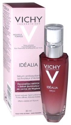 VICHY a conçu une gamme de soins formulés pour améliorer visiblement la qualité de la peau quel que soient l’âge, la carnation ou le type de peau : IDEALIA. Le Sérum antioxydant, à la texture ultra-légère, enrichi en eau thermale de Vichy apaisante et fortifiante, est spécialement formulé pour transformer visiblement la qualité de la peau et la protéger. Sa composition contient des flavonoïdes de citrus aux propriétés antioxydantes et un extrait de racine de réglisse illuminateur, capable d’agir sur la qualité de la peau couche après couche afin de lisser la peau et atténuer rides et ridules, et redonner de l’éclat. Elle contient également de la glycérine et de l’adénosine aux propriétés hydratantes et énergisantes pour hydrater et tonifier la peau pendant 24 heures. Dès la première application, la peau est veloutée et lumineuse avec une sensation de fraîcheur. En 8 jours, le teint retrouve son éclat, les signes de fatigue s’estompent, les ridules sont lissées et le grain de peau affiné. Formule hypoallergénique testée sous contrôle dermatologique, sans paraben.