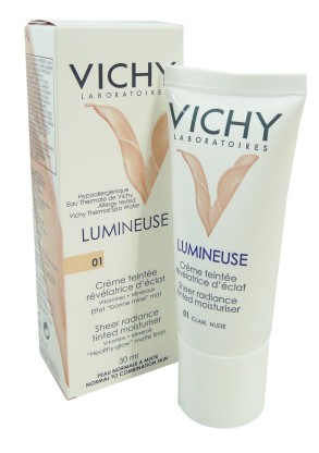 La gamme Lumineuse de VICHY est composée de crèmes pour redonner de l’éclat au visage terne. La crème teintée composé d’acides de fruits, de vitamine A, de provitamine B5, d’huile d’abricot, de filtres UVA/UVB, et d’eau thermale de Vichy unifie le teint pour lui redonner tout son éclat et sa transparence, hydrate, protège les cellules cutanées et les renouvelle, assouplit et apaise de tout inconfort. Sa texture fluide et non grasse s’applique facilement pour laisser un teint homogène et plus clair. Toute la journée le teint est resplendissant avec une couleur de peau lumineuse et naturelle.