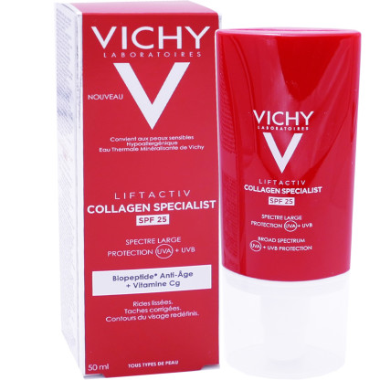 Collagen Specialist LIFTACTIV SPF25 discount de VICHY, l’expertise VICHY dans un soin quotidien anti-âge avec protection UVA/UVB pour réduire visiblement les rides et atténuer les tâches dans votre parapharmacie en ligne à prix discount. Tous types de peaux