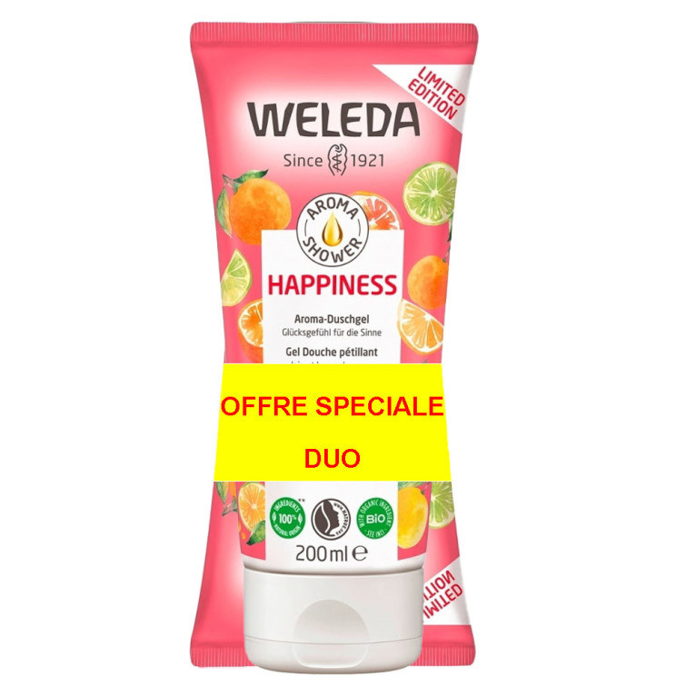 WELEDA HAPPINESS GEL DOUCHE PETILLANT BIO LOT DE 2X200ML est en vente en ligne sur le site de votre parapharmacie à prix discount.