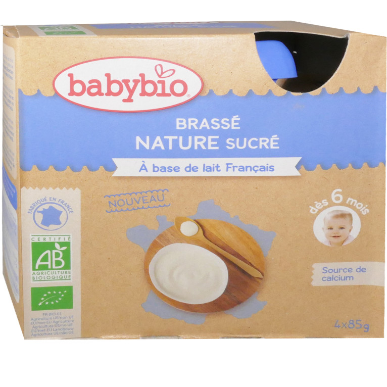 Les Gourdes de desserts lactés Brassé Nature sucré de BABYBIO discount, un bon dessert au lait français, à utiliser chez les tout-petits à partir de 6 mois dans votre parapharmacie à prix discount, pour commencer à diversifier leur alimentation tout en douceur !
