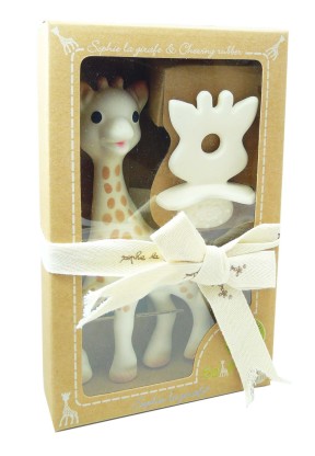 Ce petit coffret So’Pure contient Sophie la girafe et le Chewing Rubber, indispensable jouet des touts-petits.