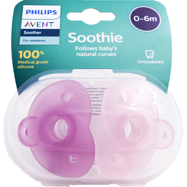 AVENT SOOTHIE SUCETTES ORTHODONTIQUES 0-6 MOIS COLORIS FILLE LOT DE 2