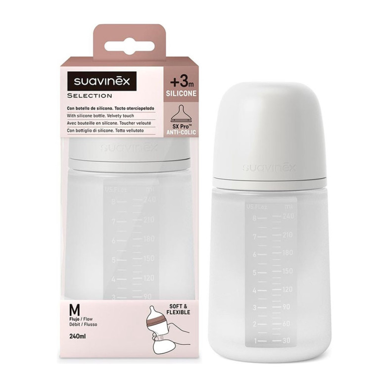 SUAVINEX BIBERON SILICONE +3M 240ML SOFT & FLEXIBLE BLANC