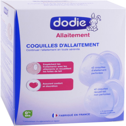 Les produits Dodie offrent aux bébés les meilleurs produits pour leur nutrition et leur confort et des produits aux mamans pour leur confort d'allaitement, de conservation et de stérilisation. La boite contient 2 coquilles protège mamelons et 2 coquilles recueille-lait en silicone souples pour un allaitement confortable. Les coquilles protège-mamelons permettent de limiter les crevasses causés par l’allaitement ; composés de 3 trous les protège mamelon vont laisser respirer la peau en facilitant la circulation de l’air et permettre une cicatrisation plus rapide des mamelons crevassés.