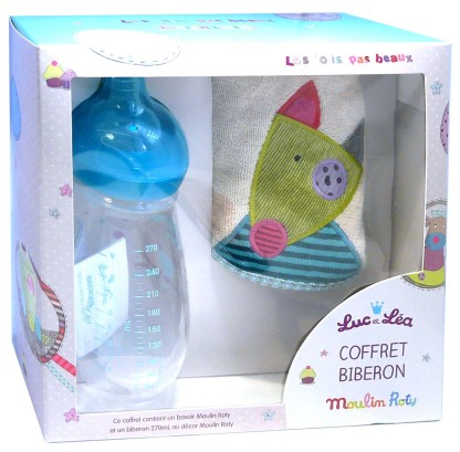 Le Coffret biberon Moulin Roty de Luc et Léa discount, un univers de fantaisie pour les bébés dans votre parapharmacie en ligne à prix discount, dans un coffret réunissant un biberon (270ml) et un bavoir aux motifs « Moulin Roty » pour stimuler l’appétit de bébé et protéger ses vêtements.