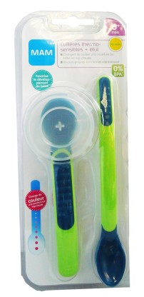 MAM développe depuis 35 ans des produits de puériculture uniques, tant par leur design que par leur fonctionnalité, afin de favoriser le développement des jeunes enfants et répondre aux exigences de leur parents. Chaque produit est conçu en partenariat avec des professionnels du monde médical, pédiatrique et scientifique : médecins, sages-femmes, psychologues du développement, designers et experts en technologie, afin que tous les bébés démarrent la vie du bon pied. Les cuillères thermosensibles de MAM de longueurs différentes et munies de leur étui, sont spécialement conçues pour favoriser l’apprentissage du repas dès 6 mois. Leur forme arrondie facilite la prise en main et évite de blesser les gencives fragiles de bébé lors de leur mise en bouche. Thermosensibles, elles changent de couleur en fonction de la chaleur des aliments et évitent de brûler bébé.