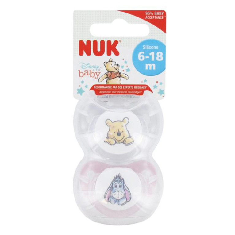 Les sucettes Winnie de NUK discount dans votre parapharmacie en ligne, la sucette qui apaise et rassure les bébés de 6 à 18 mois, tout en respectant le développement de la bouche. coloris et motifs selon disponibilité