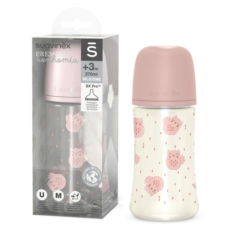 SUAVINEX BIBERON +3M 270 ML HIBOU ROSE