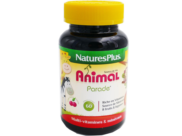 SOURCE de VIE Enfant « animal parade » de NATURESPLUS est un complément alimentaire sous forme de comprimés en forme d’animaux à croquer arôme naturel cerise, 100% naturel, riche en vitamines, source de minéraux et qui contient des extraits de 7 fruits et légumes à destination des enfants.