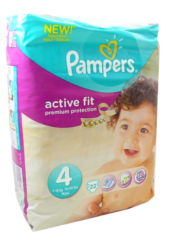 Les couches Active Fit 4 de PAMPERS sont adaptées pour les petits de 7 à 18kg, pour une protection efficace et toute douce de 12 heures pour la peau fragile.