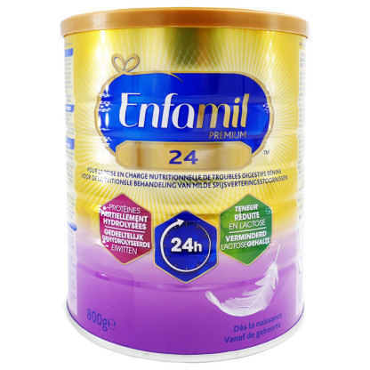 ENFAMIL PREMIUM 24 discount, le lait en poudre qui permet aux bébés dès la naissance souffrant de troubles digestifs bénins de retrouver un meilleur confort lors de la prise du biberon en 24 heures, dans votre parapharmacie en ligne à prix discount. Denrée alimentaire destinée à des fins médicales spéciales pour les bébés dès la naissance non allaités.