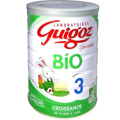 Depuis plus d’un siècle, Guigoz accompagne le développement harmonieux des bébés et la sérénité de leur maman en proposant des laits infantiles de qualité, conçus pour apporter une réponse adaptée à tous les besoins nutritionnels et/ou digestifs des tout-petits. Le lait Croissance 3 de Guigoz Bio est à base d’ingrédients agricoles issus de l’agriculture biologique pour le respect de l’environnement de de la biodiversité et provient des vaches nourries de pâturages et fourrages élevées en plein air. Il est spécialement formulé pour apporter tous les éléments nutritifs essentiels à la croissance des jeunes enfants de 10 à 36 mois avant le passage au lait de vache. Ce lait au goût naturel, apporte deux fois moins de protéines que le lait de vache, des vitamines, des minéraux, et de l'acide alpha-linoléique (AAL) qui est un acide gras essentiel de la famille des oméga 3, qui favorisent le développement normal neurosensoriel des tout-petits (système immunitaire et cérébral, formation des os).