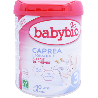 BABYBIO Caprea Croissance discount, un lait infantile au lait de chèvre bio adapté aux bébés dès 10 mois dans votre parapharmacie en ligne à prix discount, en complément d’une alimentation diversifiée pour leur bon développement.