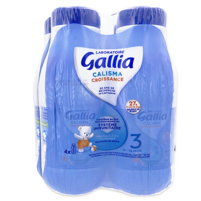 GALLIA CALISMA LAIT 3EME AGE CROISSANCE 4X500ML en vente en ligne, sur le site de votre parapharmacie à prix discount, est le lait idéal pour accompagner la croissance de votre bébé.