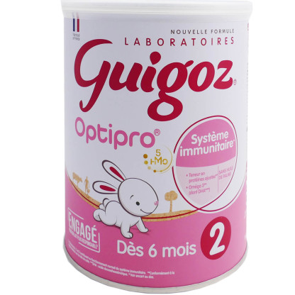 Depuis plus d’un siècle, Guigoz accompagne le développement harmonieux des bébés et la sérénité de leur maman en proposant des laits infantiles de qualité, conçus pour apporter une réponse adaptée à tous les besoins nutritionnels et/ou digestifs des tout-petits. Le lait 2ème âge de Guigoz est spécialement formulé pour apporter tous les éléments nutritifs essentiels à la croissance des bébés de 6 à 12 mois qui ne présentent pas de problèmes digestifs particuliers. Ce lait apporte des protéines en dose suffisante pour ne pas surcharger l’organisme des nourrissons, du fer, des vitamines, des minéraux et de l’acide alpha-linolénique : un acide gras essentiel de la famille des omégas 3 qui favorise le développement normal neurosensoriel des tout-petits.