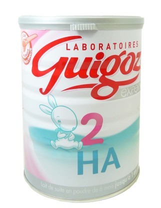 Depuis plus d’un siècle, Guigoz accompagne le développement harmonieux des bébés et la sérénité de leur maman en proposant des laits infantiles de qualité, conçus pour apporter une réponse adaptée à tous les besoins nutritionnels et/ou digestifs des tout-petits. Le lait Expert HA 2ème âge de Guigoz est spécialement formulé pour apporter tous les éléments nutritifs essentiels à la croissance des bébés de 6 à 12 mois qui présentent des risques d’intolérance aux protéines de vache. Ce lait à la formule épaissie à l’amidon de pomme de terre est composé de protéines hydrolysées (coupées) qui réduisent le risque allergique. Il apporte du fer, des vitamines, des minéraux des acides gras essentiels qui favorisent le développement normal neurosensoriel des tout-petits. L'OMS recommande l'allaitement au sein pendant les six premiers mois suivant la naissance.
