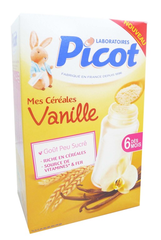 Depuis 1896, PICOT développe des produits de nutrition infantile de haute qualité et propose des gammes complètes de laits infantiles, céréales instantanées, jus de fruits… issus d’un savoir-faire de tradition, pour participer à la croissance harmonieuse des bébés et assurer la tranquillité des mamans. Les céréales PICOT sont élaborées à partir de recettes originales qui se transmettent de génération en génération, avec un procédé unique de fabrication et une composition sans sucre ajouté, sans gluten, sans conservateur ni colorant. Les céréales vanille riches en vitamines et minéraux (fer, vitamines A, D, C, B1, B2, B12, PP, B9) initient Bébé à la découverte de nouvelles saveurs, tout en répondant parfaitement à ses besoins nutritionnels. Elles accompagnent de façon savoureuse le lait 2ème âge au moment de la diversification alimentaire.
