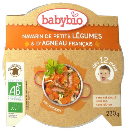L’Assiette Navarin de légumes Agneau de BABYBIO, un délicieux repas à donner aux tout-petits à partir de 12 mois pour apprendre à manger tout seul.
