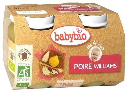 Les Petits pots Poire Williams de BABYBIO, un bon dessert ou goûter à utiliser chez les tout-petits à partir de 4 mois pour commencer à diversifier leur alimentation tout en douceur.