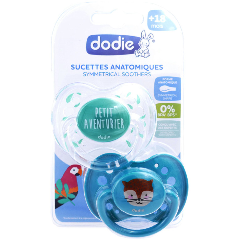 Sucette anatomique silicone +18 mois de DODIE discount, la sucette qui apaise et rassure les bébés de + de 18 mois dans votre parapharmacie à prix discount, tout en respectant le développement de la bouche. Motifs et Couleurs selon disponibilité
