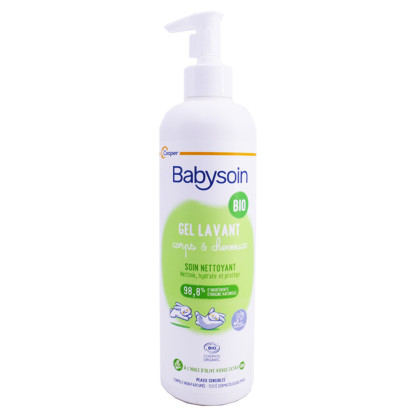Le Gel lavant Bio Corps & Cheveux BABYSOIN d’origine naturelle, est spécialement conçue pour nettoyer en douceur la peau et les cheveux délicats de bébé et l’apaiser. Sa formule haute tolérance et sans parfum associe de de l’huile d’olive et de l’extrait d’aloe vera, pour réparer, hydrater et protéger l’épiderme et le cuir chevelu fragiles des tout-petits. Après la toilette la peau de bébé est propre, réconfortée. La peau et les cheveux sont doux. Ne pique pas les yeux. Testé sous contrôle dermatologique