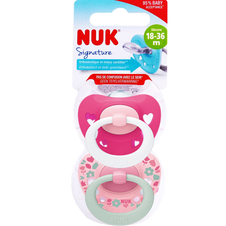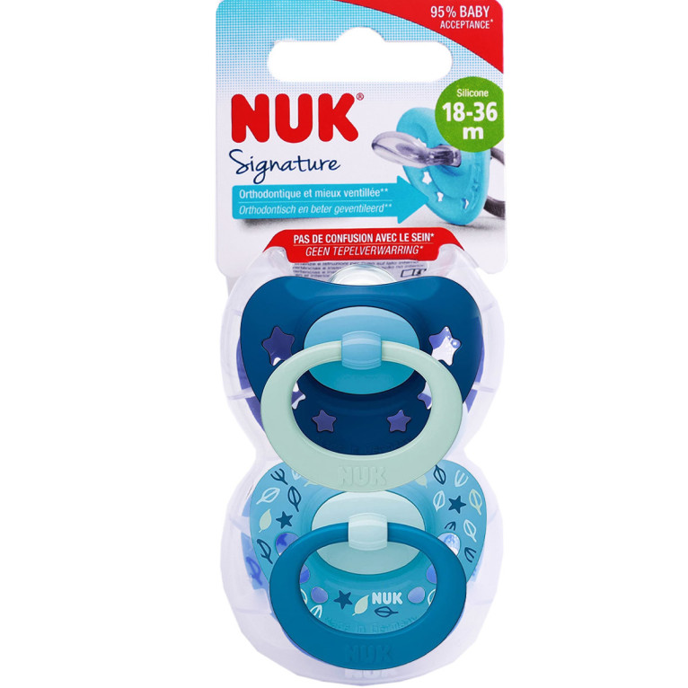 NUK SIGNATURE SUCETTES SILICONE 18-36 MOIS LOT DE 2