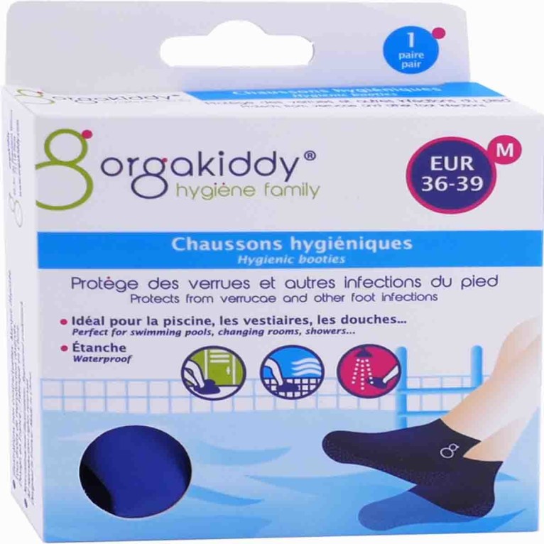 Les chaussons en latex taille M d’ORGAKIDDY ont été spécialement conçu pour assurer une protection à vos pieds dans les lieux communs. En effet, que ce soit à la piscine municipale, dans les douches communes ou des vestiaires, vous pouvez attraper plusieurs infections du pied (verrues). Grâce à ces chaussettes étanches et hygiéniques, vos pieds évitent le contact direct avec le sol et vous protège des possible infections. Les CHAUSSONS HYGIENIQUES protègent des blessures et permettent aussi de se baigner avec des pansements.
