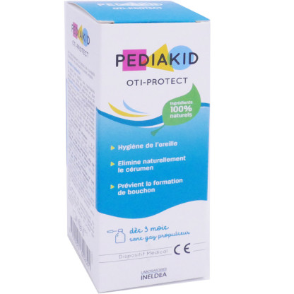 PEDIAKID est une gamme dédiée aux enfants, spécialement développée pour apporter des solutions efficaces, sans effet indésirable à tous leurs petits désordres : sommeil, appétit, tonus… Les produits PEDIAKID sont élaborés avec des actifs 100% d’origine naturelle, pour offrir le meilleur et le plus doux de la nature aux plus jeunes. Oti-Protect PEDIAKID est un dispositif médical qui fluidifie et dissout le cérumen pour l'éliminer naturellement à l'extérieur de l'oreille par ses actifs 100% naturels : huile d’olive de qualité pharmaceutique, huile essentielle de menthe poivrée. Sans gaz propulseur, le spray permet une action douce pour le bien-être de l’enfant. Oti-Protect permet de ne pas utiliser de coton tige ouatés pour les oreilles fragiles des petits.