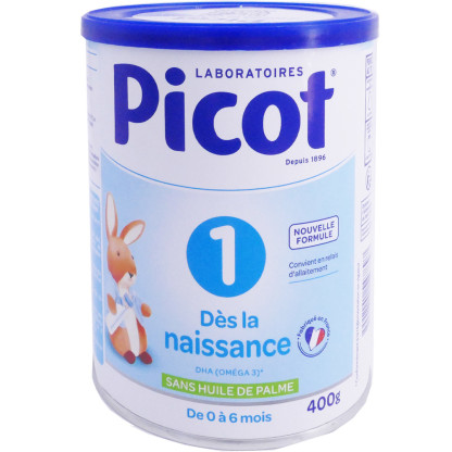 Depuis 1896, PICOT développe des produits de nutrition infantile de haute qualité et propose des gammes complètes de laits infantiles, céréales instantanées, jus de fruits… issus d’un savoir-faire de tradition, pour participer à la croissance harmonieuse des bébés et assurer la tranquillité des mamans. Le lait en poudre PICOT 1 sans huile de palme apporte tous les éléments essentiels à la croissance harmonieuse des bébés. Il peut être utilisé en relais de l’allaitement. Ce lait composé de DHA (acide docosahexaénoïque) et de vitamines et minéraux, contribue à la croissance des tissus et au développement des os et du système nerveux sans surcharger l’organisme fragile et le système digestif encore immature de bébé.