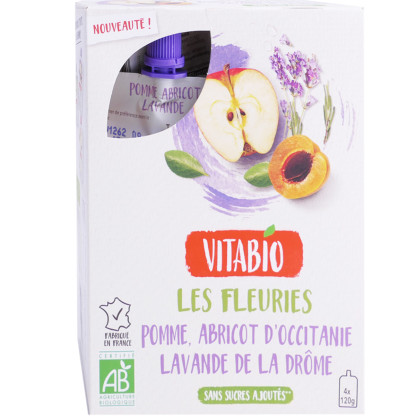 VITABIO LES FLEURIES GOURDES BIO POMME ABRICOT LAVANDE 4X120G