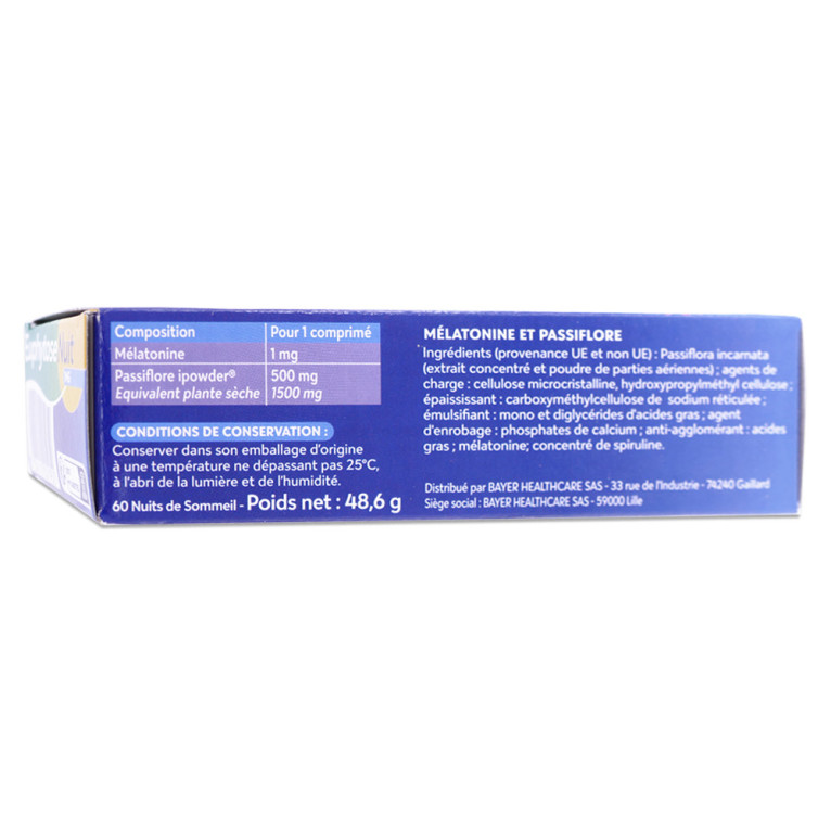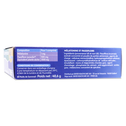 Ce complément alimentaire contient de l'extrait de Passiflore d’origine végétale 100% naturel, qui soutient la relaxation et contribue à un sommeil normal. La mélatonine*, présente à hauteur de 1mg par comprimé, contribue à réduire le temps d'endormissement. Sans dépendance ni accoutumance, ce produit est idéal pour ceux qui recherchent une solution naturelle pour soutenir la qualité du sommeil. P