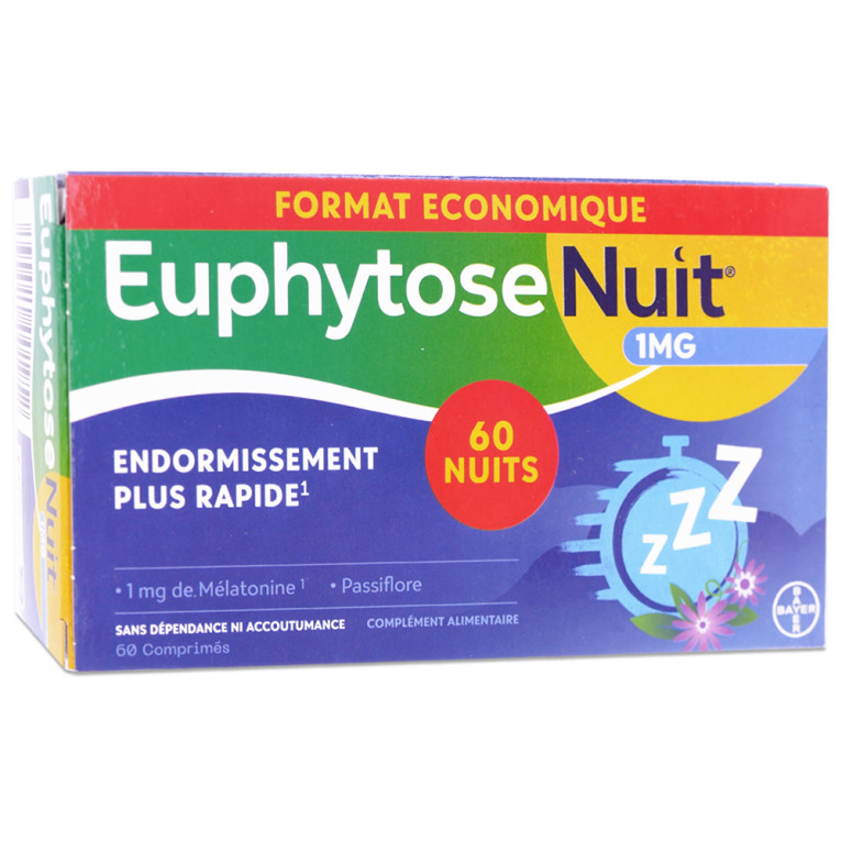 EUPHYTOSE NUIT 1MG 60 NUITS 60 COMPRIMÉS est disponible en vente en ligne à prix discount.