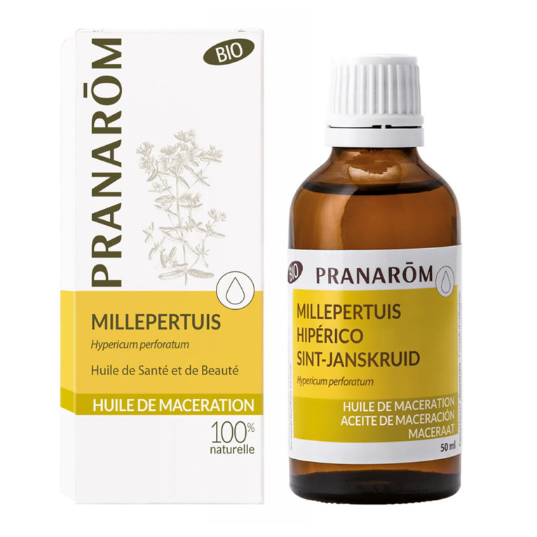 Le laboratoire PRANAROM conçoit des produits d’aromathérapie et compléments alimentaires à base d’huiles essentielles pures et naturelles et de plantes naturelles pour retrouver le bien-être au quotidien. L'huile de Millepertuis BIO appelée aussi herbe de la St-Jean est une huile obtenue par macération de sommités fleuries de Millepertuis. Elle soulage les inconforts liés aux rougeurs pouvant être causés par le soleil ou le froid et protège la peau des agressions extérieures tout en lui redonnant une grande douceur.