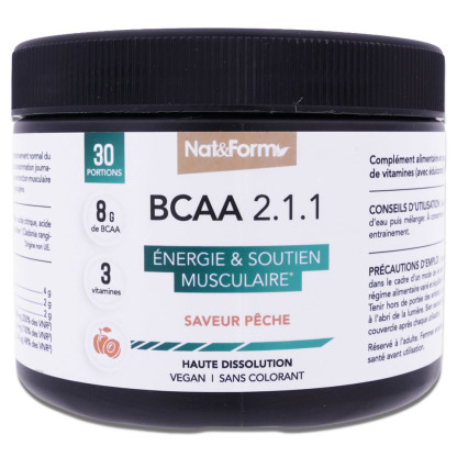 NAT& FORM BCAA 2.1.1 SAVEUR PECHE 270G est disponible en vente en ligne à prix discount sur Pharmashopdiscount