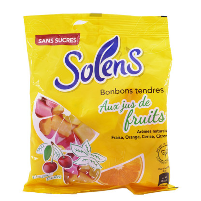 SOLENS BONBONS TENDRES AUX JUS DE FRUITS SANS SUCRES 100G est disponible en vente en ligne à prix discount sur Pharmashopdiscount.