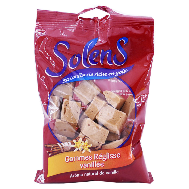 SOLENS GOMMES REGLISSE VANILLEE 100G est disponible en vente en ligne à prix discount sur Pharmashopdiscount.
