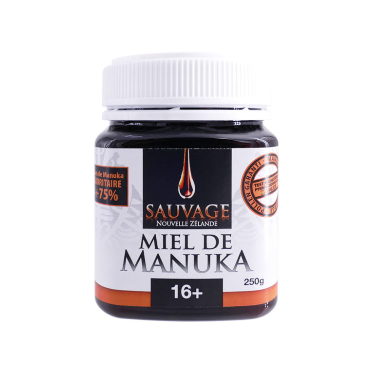 Le Miel de MANOUKA, est originaire de l’île du sud de la Nouvelle Zélande. Il est issu de l’arbrisseau Manuka qui possède des fleurs blanches et parfumées. Les abeilles apportent à la ruche le pollen lors de l’éphémère floraison durant 6 semaines. Le Miel de Manuka Sauvage est produit selon la méthode artisanale de Nouvelle Zélande. Ce miel pur non coupé ni modifié génétiquement, garanti un très haut niveau d’activité : 16+ soit plus de 75% de taux de pollen. La médecine maorie lui attribuait de nombreuses propriétés.