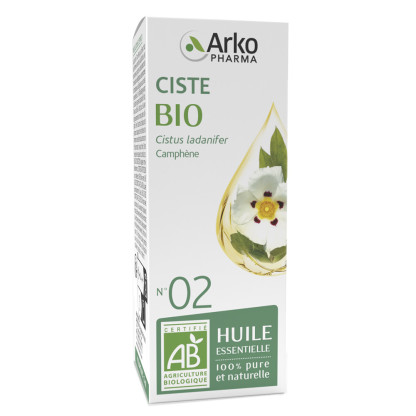Ciste BIO N°02 huile essentielle 100 % pure et naturelle d'ARKOPHARMA, l'aromathérapie à utiliser uniquement en massage en vente dans votre parapharmacie en ligne à prix discount.